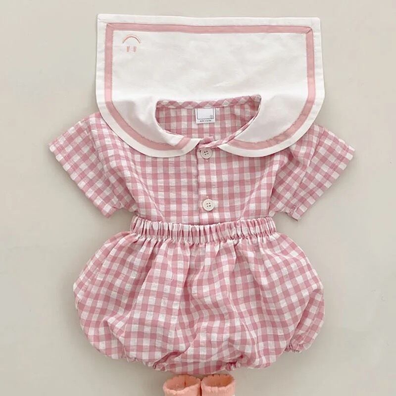 ギンガムチェックのセーラーセットアップ